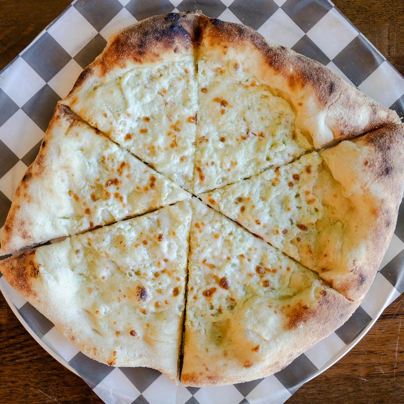 Olive Oil, Parmesan and Ricotta Base with Garlic confit and Mozzarella Cheese