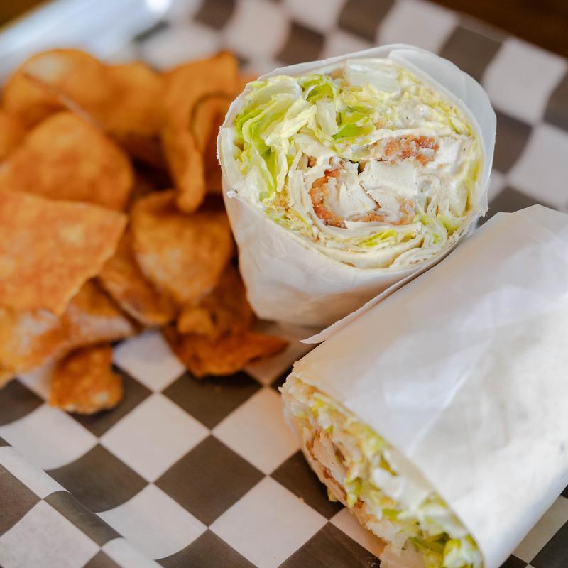 Romaine Lettuce, Parmesan Cheese, Croutons, Diced Chicken Tenders, Rolled in a Garlic-Herbed Tortilla Wrap