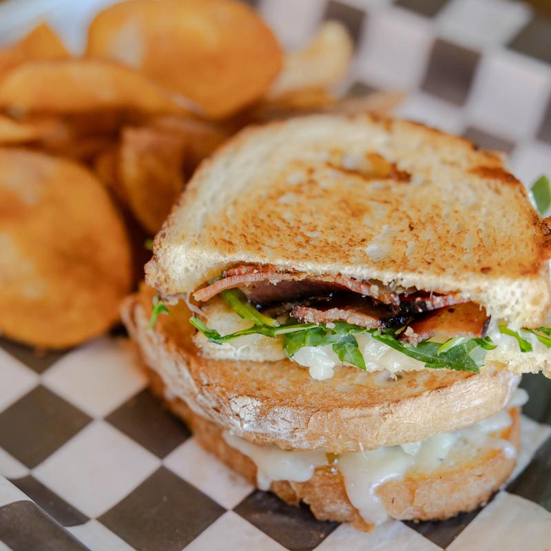 Mozzarella, Fig Jam, Arugula, and Black Forest Bacon Grilled Between Sourdough bread