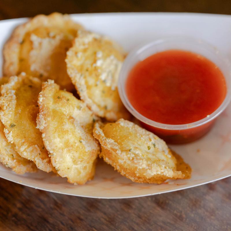 3 Different Cheeses Mixed Together and Fried in a Ravioli Pocket, Served with Red Sauce